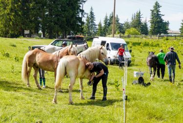 Un véhicule transporte les bagages d'une étape à l'autre. Pour ce qui est des soins des chevaux, vous êtes invitez à y prendre part : brosser, seller, desseller, et leur donner à boire avant, pendant et après la balade. Biensûr, l'équipe sera là pour vous aidez en cas de besoin.
