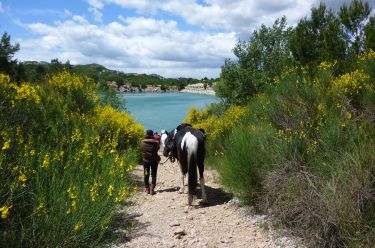 Le parfum des genêts ou le vol majestueux des aigles de Bonelli nous accompagnent ce matin vers un lieu magique. Le paysage tout entier est coloré de rouge, on se croirait au Colorado ! Soudain, au détour du sentier, apparaît un lac aux eaux bleu turquoise, le contraste est saisissant ! C’est dans ce décor spectaculaire que nous partageons un bon et copieux casse-croûte. De nouveau en selle, d'agréables chemins ombragés au coeur du Parc Naturel des Alpilles jalonnent notre randonnée et offrent des panoramas de toute beauté. Repas et nuit au gîte.