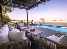 Retour au camp de Kujwana au coucher du soleil pour savourer une boisson rafraîchissante en admirant la vue imprenable sur les plaines inondables.