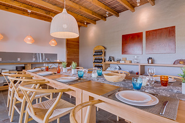 Les repas sont servis dans le restaurant de la Quinta, soit en intérieur, soit sur les tables disposées sur le grand balcon-terrasse dominant la vallée. Les plats sont proposés sous forme de buffet préparé avec soin par l'équipe, permettant à chacun de choisir ce qui lui plait le plus. Une large place est faite à la gastronomie locale. Option repas végétariens possible. |