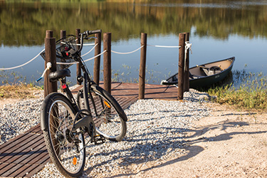 Une petite salle de sport, des vélos pour explorer les 250 hectares de la propriété, et des canoës pour des balades sur le lac sont disponibles gratuitement. |