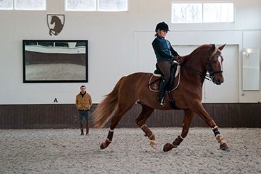 Taille du groupe : 1 cavalier par instructeur et par leçon pour le dressage.