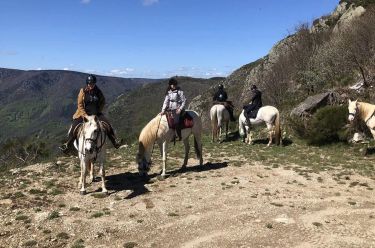 Sur cette randonnée, nous vous proposons une cavalerie variée composée d'une dizaine de chevaux d'origines diverses souvent issus d'ibériques et de taille moyenne (1m55-1m60). La plupart sont nés à la ferme, et ont été entraînés spécifiquement pour la randonnée, ce qui vous garantit une monture au pied sûr et au bon tempérament, qui saura vous faire découvrir la région en toute sécurité. |