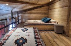 L’hébergement se fait en dortoir au caractère unique, entièrement pensé dans une ambiance full western. Lits en rondins de bois, linge de lit aux motifs amérindiens, décoration soignée et rocking-chair créent une atmosphère conviviale et dépaysante. Le dortoir dispose de 3 lits superposés, 2 lits doubles et 1 lit simple, offrant confort et authenticité. Une salle de douche et trois WC complètent cet espace fonctionnel et chaleureux. |