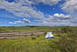 En arrivant à Hongyuan à la fin de la journée, vous serez frappé par le contraste avec les paysages montagneux de Heishui. Ici, les vastes prairies s’étendent à perte de vue, offrant un décor paisible et majestueux, où la nature et le ciel semblent se confondre à l’horizon. Aux écuries, vous rencontrerez l’équipe locale et les chevaux. Nuit en camping aménagé ou yourtes locales.