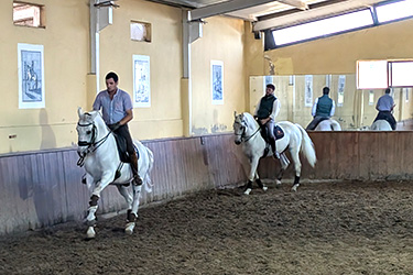Les cours sont dispensés principalement par Mario, propriétaire de la structure et formé par des cavaliers d'exception, dont Miguel Ralao, champion olympique de dressage, et Miguel Fonseca, champion du monde d'équitation de travail. Mario parle anglais et portugais. Il a également quelques notions de français, pour les termes techniques de dressage, mais vous devrez parler suffisamment anglais pour bien profiter des cours. |